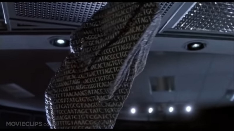 What are the letters on the velociraptor in Jurassic Park?
