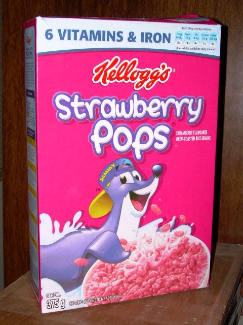 Strawberry Pops look just like Kellogg's Rice Crispies, except they are pink and strawberry flavoured. This makes them good to create a variant of the "Rice Crispies Square", which is made by mixing Rice Crispies and marshmallow. Use Strawberry Pops instead to make pink squares that taste delicious!