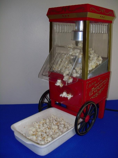 The Nostalgia Electrics Popcorn maker provides you with windpopped popcorn, with no oiliness or a dirty pot to clean afterwards.