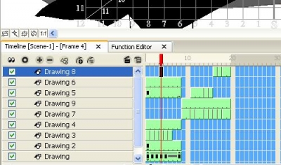 In the camera view rectangle, start by drawing a background that covers all of the rectangle. You will see that in your Exposure Sheet Tab there appeared the word "Drawing" and a number. The Exposure sheet is like a timeline that is listed vertically. Every following frame of an element is listed as a new drawing below the previous one.