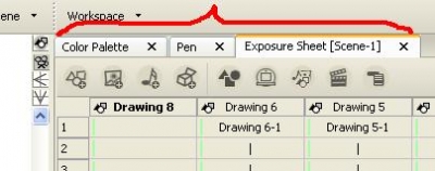 • usually tabbed together Color Palette, Pen, Exposure sheet (ToonBoom is completely customizable so these can be anywhere on the screen and moved to anywhere) .