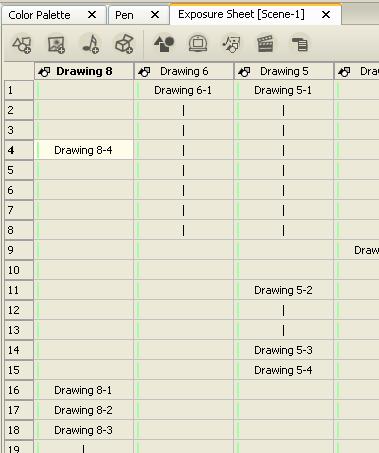 We're going to add a moving character on this background now that walks from one end to the other. On your Exposure Sheet Tab, click the following button: